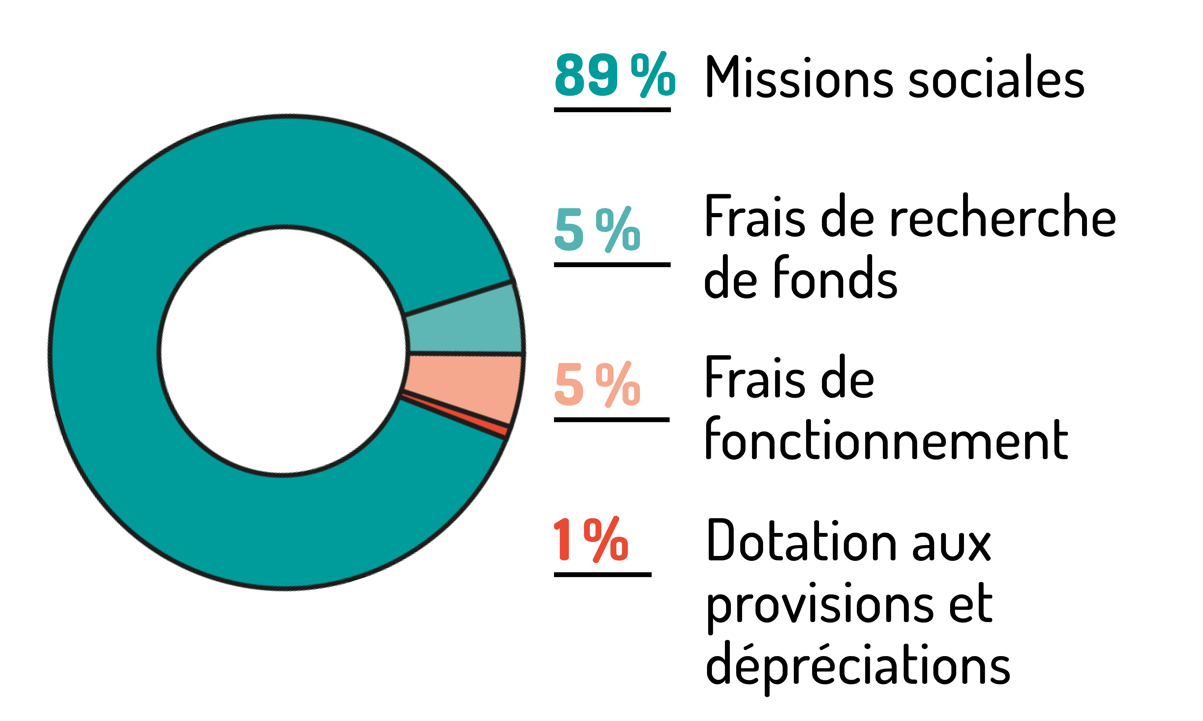 Près de 90% de nos ressources sont affectées aux missions sociales et aux projets futurs.